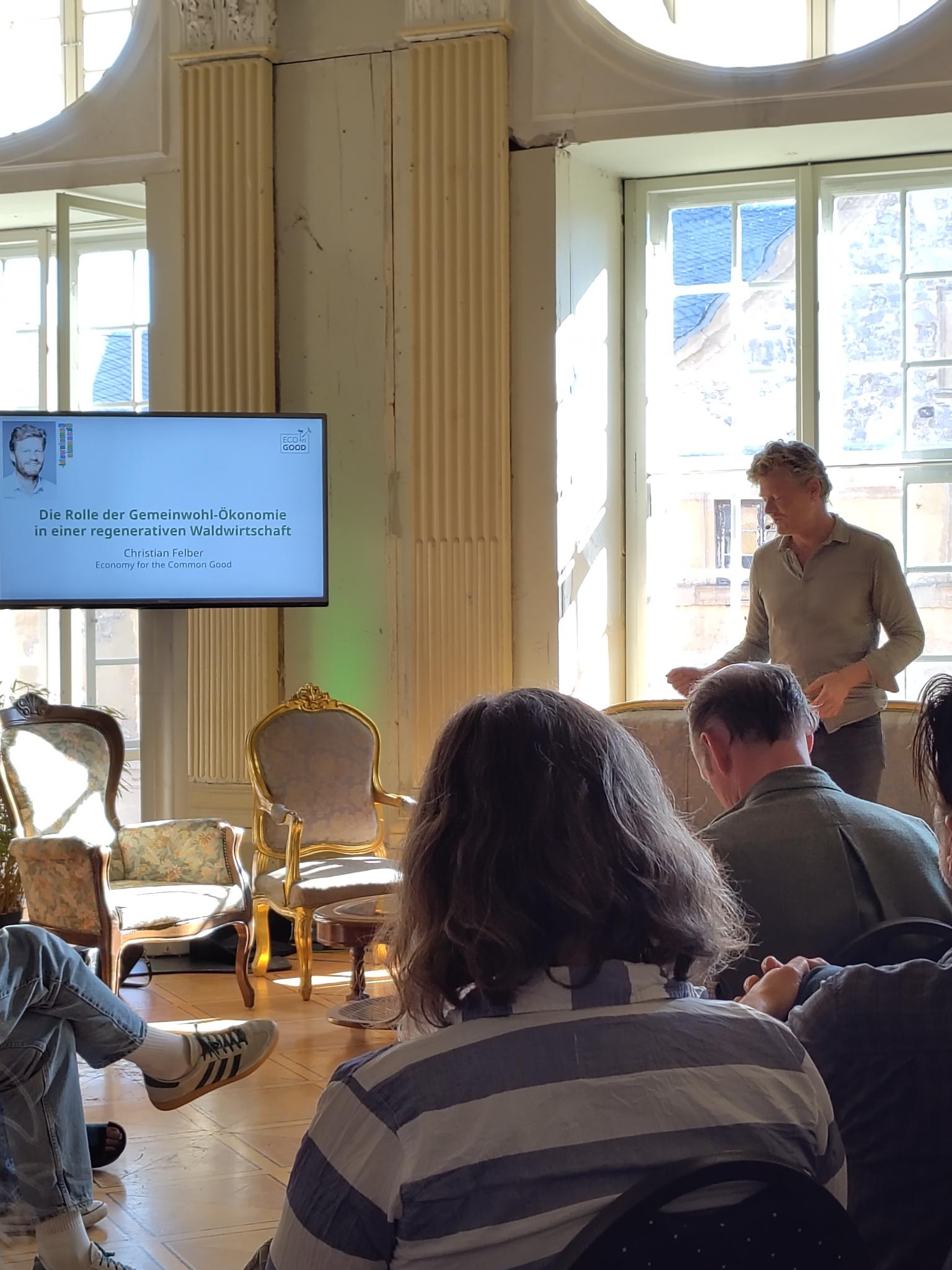 • Am 6. September 2025 waren wir von der Regionalgruppe Magdeburg in Blankenburg auf dem Future Forest Forum, Europas führender Konferenz für Wald und NatureTech. Wir waren mit einen Stand zur GWÖ vertreten und hatten somit die Gelegenheit, mit vielen begeisterten Menschen ins Gespräch zu kommen. Auch Christian Felber, der Initiator der GWÖ, war vor Ort und hat einen Impulsvortrag zur GWÖ gehalten mit anschließender Diskussion.